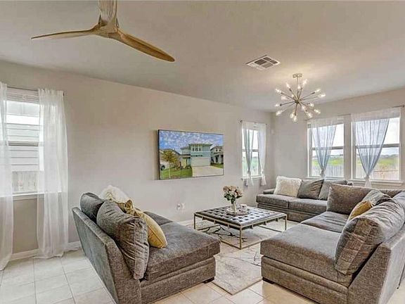 4 bedrooms 2.5 bathrooms (1/2 is downstairs) 2 living spaces and a 2 car garage right next to an elementary school. House backs up to a greenbelt and has the park, pool and trails right down the street.