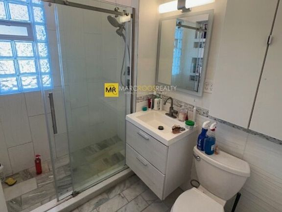 The unit features an open layout with bright natural light, hardwood floors, and a modern kitchen equipped with stainless steel appliances, granite countertops, and ample cabinet space. Each bedroom is generously sized, and the bathrooms are updated with sleek finishes.
