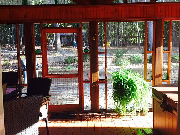 Experience the southern charm of this adorable home nestled on 1.3 acres of incredible, wooded landscape. Relax on the covered front porch or retreat to the gorgeous, screened-in back porch with vaulted ceilings and additional stone patio. Enter into this inviting, open floor plan that expands to the kitchen and dining area. Kitchen improvements (2017) include granite countertops and stainless steel appliances. Beautiful laminated wood floors in living areas, modern lighting, and double-paned windows throughout. Master bedroom has en-suite updated, bathroom. All bedrooms are equipped with ceiling fans and recently replaced carpet (2016). Hallway bathroom also updated (2017). Plenty of storage provided by built-in shelving in closets, pull down attic, and spacious laundry room. Enjoy the fully fenced backyard that displays a stunning scenery of trees and natural landscaping. Picturesque, outdoor workshop is equipped with plumbing and electricity. Newer HVAC (2016) has extended warranty.