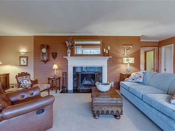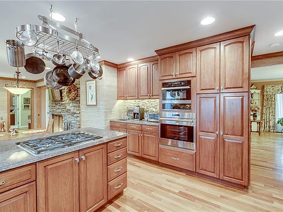 Gorgeous from the curb and just as lovely inside, this spacious ranch offers a gracious living room with crown moulding, a picture window, and a wood-burning fireplace featuring classic marble and dentil moulding. The formal dining room boasts lovely original corner built-ins, crown moulding, Brazilian Walnut flooring, custom embroidered draperies and a beautiful picture window with side windows. The updated kitchen boasts gleaming Brazilian Hardwood flooring, granite, a glass backsplash, and lots of beautiful custom Hickory cabinetry. The family room (updated in 2016) has custom blinds, a wood-burning fireplace with gas starter, built-in lighted corner cabinet, crown moulding , Brazilian Walnut flooring and great natural light. The office is light and bright and could be a laundry room... Four roomy bedrooms, three full baths and a huge finished lower level - all on over and acre! There is plenty of parking and turn-around room in the rear.