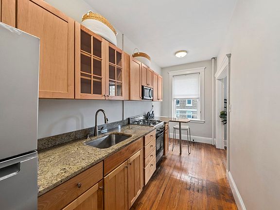 Just steps from the B & C Green Line "T", and walking distance to COOLIDGE CORNER, Whole Foods, Starbucks, gyms, and more this is city living at its BEST. SUN-DRENCHED and stylishly renovated, this raised first-floor corner unit offers unbeatable value in one of Brighton's most walkable locations. Featuring 9-foot ceilings, oversized windows, and no abutting walls, this one-bedroom home is flooded with natural light and packed with charm. Fully renovated with updated finishes and converted to gas/forced hot water heating in 2023, this unit is move-in ready! NO FURNITURES INCLUDED