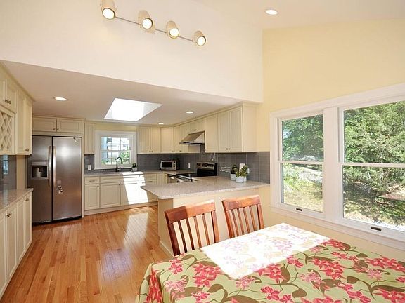 - Kit Dscrp: Pantry, Dining Area, Flooring - Hardwood, Countertops - Stone/Granite/Solid, Cabinets - Upgraded, Skylight, Ceiling - Cathedral, Breakfast Bar / Nook, Recessed Lighting, Remodeled