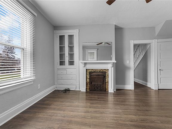 Detached two car garageNice corner lotWhite cabinetryDecorative fireplaceLovely wood staircaseGas stoveTiled entry