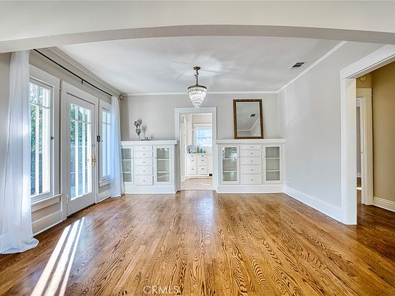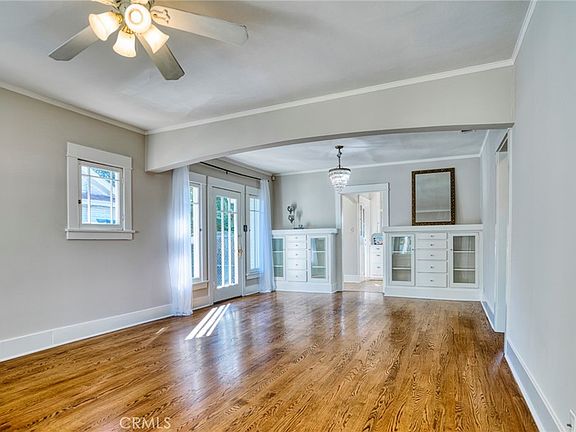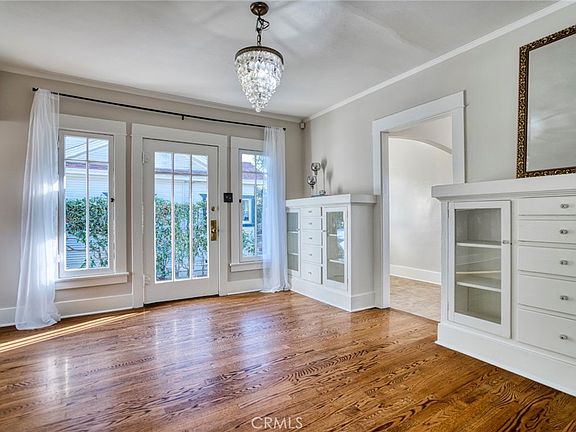 Set on a quaint, tree-lined street within Fullerton’s original townsite, 229 N. Cornell Avenue is part of the city’s College Park Historic District. The neighborhood is culturally and architecturally significant, reflective of the Fullerton’s growth in the early 20th century. This 1923 Craftsman bungalow’s gracious and welcoming front porch ushers you into the home’s main living area with kitchen and laundry room just beyond; wood floors and fresh paint create a calm, restful environment. Glass-front built-in cabinets and a chandelier are ready to help you create a more formal dining area, a contrast to the cozy breakfast nook around the corner. With windows that look out over the lush yard and its mature landscaping, the simple yet efficient kitchen enjoys the essentials, along with more cabinetry and details that are true hallmarks of Craftsman design: simplicity, functionality, and craftsmanship. Off the living area, a hall leads to two bedrooms and a full bathroom. The front bedroom is bathed in light, thanks to large windows which look out over the flowerbeds and lawn, while the second bedroom enjoys views of the rear yard and its abundant, fragrant lavender. Along with other period homes in the area, this Mills Act-eligible residence blends architectural beauty with the city’s strong sense of community and academic influence. Its numerous original details and woodwork, long driveway leading to a detached garage, and picturesque, walkable charm make 229 N. Cornell a true gem with a rich history.
