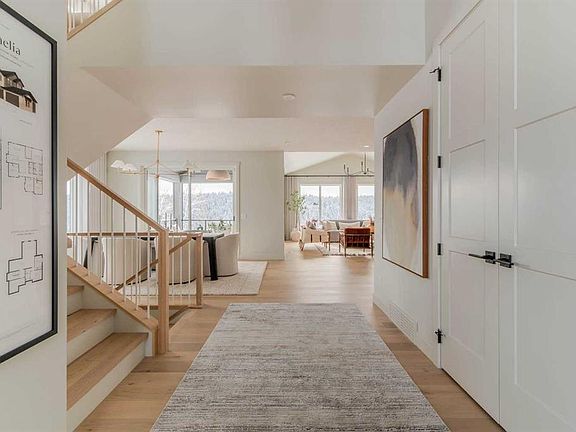 Welcome to 229 Rowmont Drive NW. This Showhome is available for lease back with excellent return on investment, however customers can also build similar custom homes on available view lots. Set on a rare lot backing onto protected greenspace, this brand-new luxury estate by Baywest Homes captures sweeping views of the Bow River Valley and Bearspaw Reservoir. With a premium south-exposed design, this home offers over 4,800 sq. ft. of exquisitely finished living space and sides directly onto Rockland Park’s Osprey playground. Step into a grand foyer with soaring ceilings open to above, setting the tone for the home’s thoughtful design and refined style. The chef-inspired kitchen showcases striking two-tone cabinetry, a premium appliance package, and a walk-through mudroom with access to both a full storage pantry and a dedicated butler’s pantry. A front-facing main-floor office provides the perfect work-from-home retreat, while the bright open-concept great room captures endless valley views. The spacious dining area flows seamlessly to a large, covered deck, designed for year-round entertaining. Upstairs, the south-facing primary suite is a true sanctuary with a spa-like ensuite featuring a freestanding soaker tub and oversized tiled shower, and an expansive walk-in closet. Three additional bedrooms, plus a flexible loft and laundry room complete the upper level. The fully developed basement level offers exceptional versatility, featuring a sunlit recreation area, games room, bathroom, and a fifth bedroom. Wide-plank hardwood, curated tile selections, and warm neutral tones create an atmosphere of relaxed sophistication throughout. The oversized side-drive triple garage provides ample room for vehicles, storage, or a workshop space. Additional highlights include full landscaping, air conditioning, and custom window coverings—all included in the price. Furnishings may also be negotiable. Nestled in Rockland Park, one of northwest Calgary’s most coveted new communities, residents will enjoy future schools, scenic pathways, and exclusive access to a private clubhouse with pool. With unmatched views and meticulous craftsmanship, this home defines estate living on the Bow.