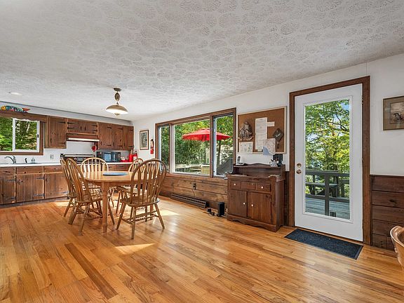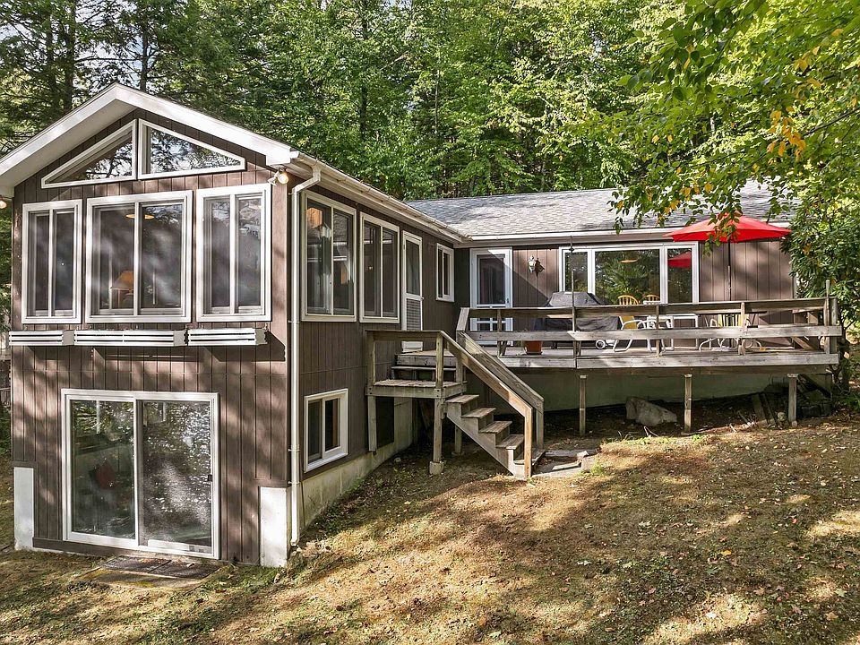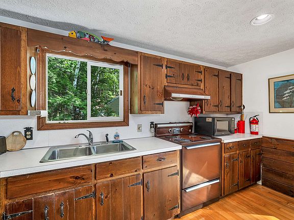 Contemporary Merrymeeting Lake Ranch on a sloping lot with 102' of southwest exposure on Pleasant Cove. This 2-bedroom Ranch has many memories for the Sellers. There is a hardwood oak floor in the open concept kitchen, dining area, and living room. A brick wood-burning fireplace adds warmth in the living room. The 2-level sunroom addition is accessed from the living room, and features a bonus room in the basement level. When you turn into the driveway there is an expanded parking area; the Sellers made occasional visits in the wintertime, by parking off North Shore Road and walking down to their Cottage. There is currently a large deck attached in front with access from either the dining area or the sunroom. Enjoy afternoon sun and lake views from the deck. You will find a wooden deck at the shorefront which is ideal for launching your kayaks and paddleboards. The gradual sandy shoreline on the sunny side of the cove is ideal for swimming. A seasonal dock could be situated close to the left corner of the shoreline where the water is deeper. Store your boating supplies in the lakeside shed. There are many newer homes in the Pleasant Cove neighborhood. This location and home may fill the needs of your family. Sign on property!