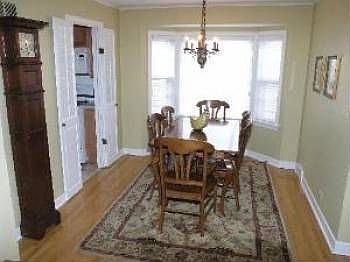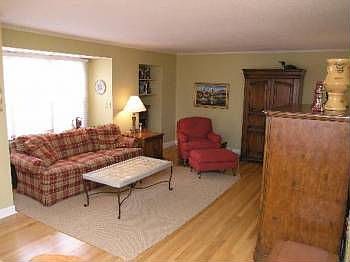 Charming updated brick Ranch on dead end street! Living room/dining room with hardwood floors, parquet in bedrooms. Bay window, moldings, built-ins. Kitchen with maple cabinets, new lighting. Wonderful sun room with ceramic tile floor, vaulted ceiling, lots of windows, French doors open to yard. All new ceramic tile bath with Corian vanity. Master bedroom with ceiling fan. Newly finished basement with recreation and game rooms. New ceilings, lighting, paneling. Bath with shower, utility room and laundry. Garage in as-is condition. Walk to golf, train.