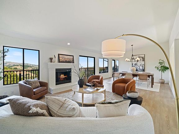 Lovingly maintained by the same family for over 40 years! Set on a generous ~0.27 acre lot with sweeping views of the surrounding hills and bay, this beautifully updated San Anselmo home offers the perfect blend of comfort, functionality, and location. With 4 bedrooms, 2.5 bathrooms, central A/C, and a flexible layout, the home lives beautifully across two levels. The main floor features the primary suite, a spacious living room with fireplace, formal dining area, and an open-concept kitchen with island - all flowing seamlessly to a large view deck with panoramic views of the Bay, Sonoma County, and San Francisco that invites indoor-outdoor living. A separate family room off the kitchen provides a second gathering space, complete with its own fireplace. Downstairs, you'll find three additional bedrooms, a full bath, laundry room, and a versatile office, storage room, or wine cellar. The gated front courtyard with pergola and waterfall offers a peaceful and private space to garden, gather, or unwind in the evening breeze. An attached two-car garage adds everyday convenience. Freshly updated plus a new roof! Located toward the end of a quiet street with a cul-de-sac feel, and with trails leading directly into downtown Fairfax, this home offers the best of both town and nature.