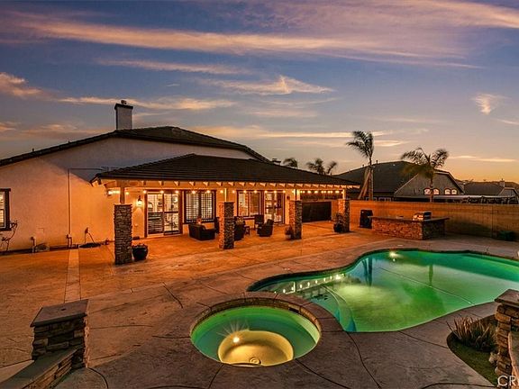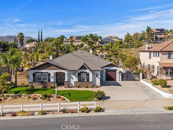 MAGNIFICENT Highly Sought After Norco Hills Single Story Home with RV PARKING, PAID OFF SOLAR, POOL & SPA . Spectacular home with elegant & high end upgrades that you will fall in love with. Beautiful curb appeal with lush landscaping. The Grand entry leads you to high 20 foot ceilings as you walk into this expansive home. This home features an office/bedroom with a Jack & Jill bathroom separated from the rest of the bedrooms. If you like to entertain you have an oversized formal dining room & an additional family room/pool table/gym area. Love to cook? Kitchen has been completely renovated with high end CUSTOM FEATURES. The custom island has a built-in kitchen table and seating area that overlooks the family room area. GOURMET KITCHEN features SUB-ZERO built in refrigerator, beautiful custom cabinets INCLUDING OVER THE RANGE, built in microwave, dishwasher and 48 inch stainless steel Fulgor Milano range that includes 6 burners and a griddle with a double oven. The quartzite countertops and the custom tile backsplash add to the elegance of this home. There are tons of cabinets with extra storage including a Walk-in Pantry . Seller has installed all newer engineered wood floors & beautiful travertine tile. The Primary bedroom has high ceilings, and a gas fireplace for ambiance and warmth. Oversized walk-in closet allows a lot of space for your wardrobe. The Primary bathroom has been completely remodeled & features dual sinks, custom quartzite countertops, large jetted tub. Sliding glass doors lead you to your oasis backyard to the view of pool and a nice breeze. There are plantation shutters through-out adding character & charm to this home. Indoor laundry room with custom cabinets and a sink. As you step outside you will fall in love in an instant. The breathtaking backyard has a gorgeous pool & spa that includes a Baja shelf perfect for soaking in. Beautiful stamped concrete all around that includes drains. The large attached patio is approx. 20 feet tall and is a perfect place to entertain guests. There is a built-in BBQ area making outdoor gatherings a breeze. As you walk up the elegant staircase to the upper portion, you will find the beautifully landscaped area large enough for many uses and animals. Located just minutes from the Hidden Valley Golf course, Pumpkin Rock Hiking trail & Ingalls Equestrian center. Paid off solar has 20 panels including a Tesla power pack, newer exterior paint. Plenty of RV Parking