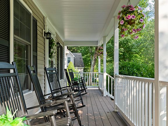 As you approach this beautiful home, you'll be greeted by a meticulously landscaped yard adorned with lush greenery and mature trees that provide both privacy and a serene ambiance. The exterior of the home is a classic representation of a Colonial style build, featuring a 2 car garage, a welcoming front porch, and large windows that flood the interior with natural light.