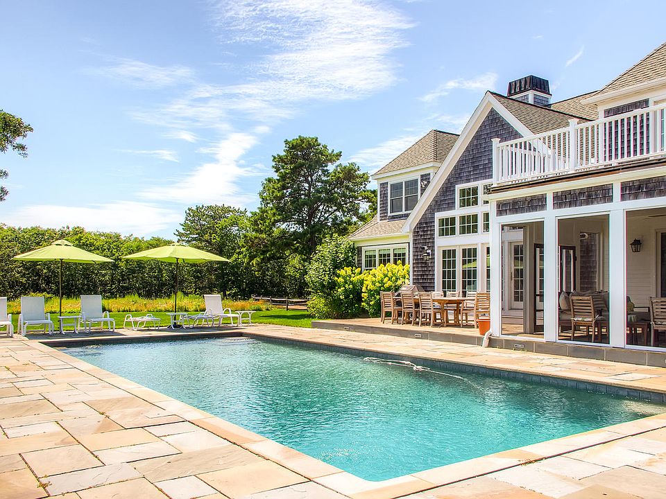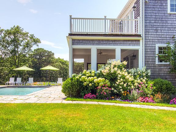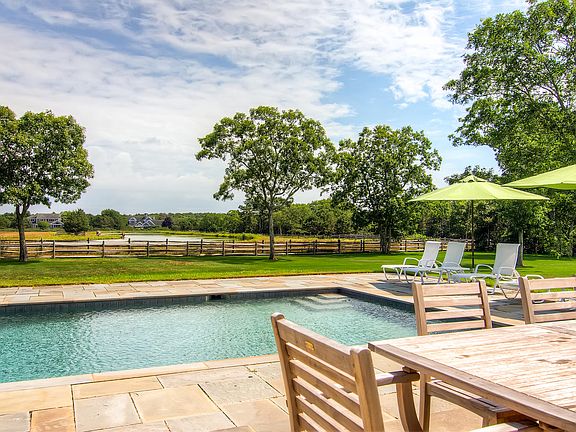 Gracious Vineyard home overlooking a horse farm with open meadows, grazing horses and freshwater ponds. The approach to the property is by way of an elegant double driveway which leads to a beautiful stone pathway to the front entrance. The home comprises of nearly 6,000 square feet of living space situated on 3 acres that are tastefully landscaped with a mixture of manicured lawn, mature trees, perennial beds and wild flower fields. The house has a double height vaulted ceiling in the living room with floor to ceiling natural light pouring in. The living room overlooks the in ground pool, private lawn, the horse farm and meadows beyond. Off the living room is a large kitchen and breakfast area that leads out to a wonderful screened in porch positioned to provide breezes and shade by the pool. In addition, on the ground floor there is a formal dining room, first floor master bedroom, full bath as well as a media room and laundry room. The second floor has a generous vaulted master bedroom wing with a large tiled bath and a bedroom/study room which can serve as a yoga space, office or tv/reading room. There are two additional guest bedrooms sharing a full tiled bath. The recently finished basement is a fabulous addition to this already spacious home. In this 1,600 square foot space there is a large living area with kitchenette, tastefully finished with oversized windows allowing natural sunlight to fill the area, along with two oversized bedrooms and large shared bathroom. The house is fully air conditioned and heated with forced hot air heat as well as a dehumidification system. Deep Bottom Association provides two private tennis courts and deeded Deep Bottom Pond dock access where owner can keep kayaks, canoes and little water craft to enjoy the pond and access the Atlantic Ocean Beach. Miles of private walking trails within the association. Ownership in West Tisbury allows for a Lamberts Cove Beach access.