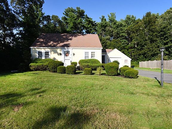 Charming traditional Cape, well-maintained, to be sold in current condition. Home is on a generous lot, nicely set back from a lovely country road. Roof with de-icer, cast iron furnace, septic, windows & doors were all upgraded by current owner. Wall of sliders leads from dining area to patio overlooking enormous sunny back yard! Two bedrooms and full bath are on the first floor. Half bath in upstairs bedroom, which has two built-in platform beds with storage drawers, as well as more storage in the eaves. Many other sturdy built-ins throughout, including walk-in pantry by the kitchen, plus bar in basement bonus room. Hardwood flooring is under some of the old carpeting. Room being used as office has big linen closet. This home with character has been loved for many years & awaits it's new owner with vision to make it your own! Near Athletic Association & very close to gorgeous 1600 acre Burrage Pond Wildlife Area. Short distance to Rt 18 and the T for easy commute.