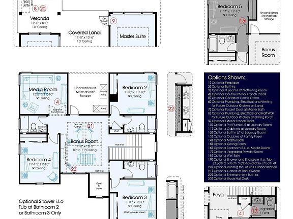 Covered lanaiOutdoor kitchenSecondary bedroomsBonus roomDownstairs master suiteElegant bathExpanded covered lanai