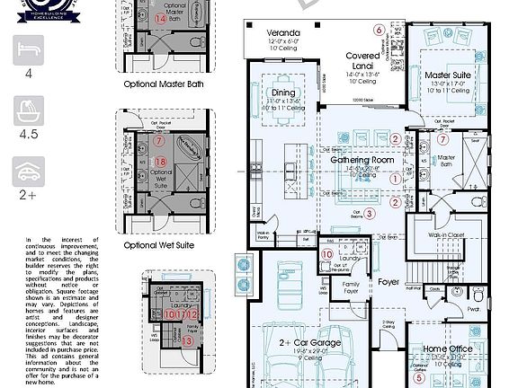 This Cleary is a 2,900 sqft. home with 4 bedrooms and 4 1/2 baths. The entry welcomes guests into the foyer . The gathering room and the dining room are open to the gourmet kitchen with views of the covered lanai. A large downstairs master suite has an elegant bath and a HUGE walk in closet that extends under the stairs! Three secondary bedrooms and three full baths are located upstairs along with a bonus room which has coffered ceilings. A large unconditioned walk-out storage area contains the mechanicals is conveniently located upstairs with plenty of storage for all your stuff. The expanded covered lanai is prewired and plumbed for an outdoor kitchen to extend the outdoor living area.