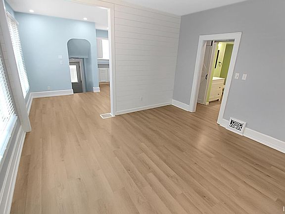 Attractive West side home with extensive updates throughout! Upon entering, you'll be fascinated by enclosed front porch with tiled flooring and double paned windows! Inside the massive living room features tall ceilings and vinyl plank flooring. Optional dining area features shiplap accent wall. The kitchen is completed with white cabinetry, updated stainless steel appliances and a breakfast nook area. Both bedrooms are generous in size and located conveniently to the full bathroom. Bathroom has been completely remodeled with a beautiful tiled step-in shower, new vanity and flooring. Basement is super clean and has been repainted throughout and has lots of natural light with the updated windows. Outback is fully fenced in with a great yard space and large deck for entertaining & summer grill outs! Detached 12'x25' garage features a new overhead garage door and large loft area for storage. Updates per seller: Roof (2022), Vinyl Siding (2022), Furnace & A/C (2024), Water Heater (2022), Basement Repainted (2024), Refrigerator (2024), Range, Dishwasher & Microwave (2022), Full Bathroom Remodeled (2022), Full Kitchen remodel (2022), Flooring (2022), Plumbing (2022), Deck (2023), Privacy Fence (2023), Garage Door (2023).