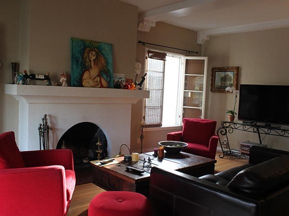 A gorgeous, huge, light and bright 3 bedrooms + 1.75 baths an upper unit in a duplex in Beverly Hills. Huge living room with beautiful stain glass picture window and wooden beam. High ceiling and wood burning fire place. Tiled kitchen with all appliances, fridge, dishwasher and stove. Breakfast room off the kitchen. 3 large bedrooms A beautiful Art Deco bathroom! Bonus room off living room, great for a home office or playroom. Large service porch with full size washer and dryer. Front and back entrances. Wood floors throughout!! Central A/C Windows coverings. 2 covered parking in the back. Front porch What a great unit with such great energy A must see! Pets are welcome with extra deposit. Tenant occupied, need 24 hour notice to show. 1 min. walk to La Cienega park. Available May 1st. Please call 323-505-2279 Owner pays for water