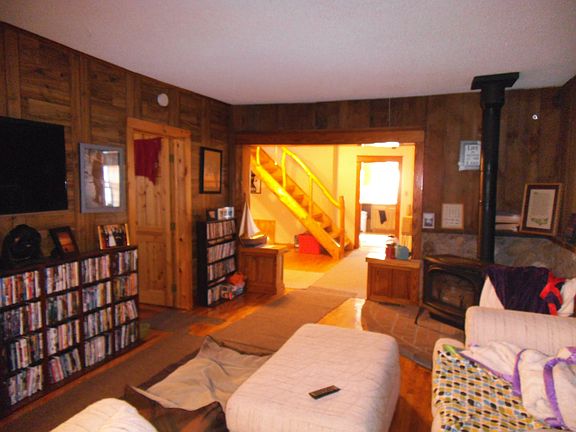 There's more than meets the eye on this great property, don't just drive by! Located in a great area, this three bedroom, two full bath home offers a very large kitchen with expansive counter space. A formal dining area as well as a woodsy living room that boasts an office nook and gas cast iron stove. With custom woodwork throughout and a unique log stairway, you'll soon forget that your near a city. The main level bathroom features a sunken jacuzzi tub in addition to a shower. The main level also offers a knotty pine bedroom with built in custom cabinets. On the second level, the spacious master suite boasts soaring ceilings, walk in closets and more. The third bedroom could be used as a family room also. The home has been well taken care of offers plenty of living space. In addition to the home, the property offers a large pole barn with parking space for 3 cars as well as an insulated workshop area. Don't miss the chance for a great new home for you!