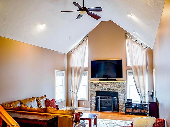 - Features: Fireplace, Ceiling Fan(s), Wood Floor, Cathedral/Vaulted Ceiling, Balcony/Deck