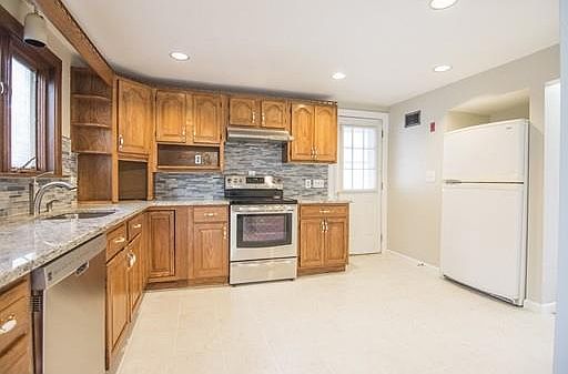 This house has it all! Deleaded - Desirable South Acton location, easy access to Route 2 and commuter rail. Freshly renovated three bedroom two bath home with a walkout basement, detached two-car garage and fenced backyard. New paint inside and out, brand new appliances and new granite countertops, new porcelain tile in kitchen and dining area, polished hardwood and new waterproof vinyl floors in the lower level. Central AC, Central Vac. Washer and dryer included. Tenant pays all utilities. No Pets