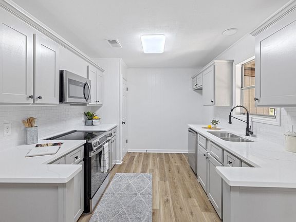 Newly remodeled 4 bedroom/3 bath home in a quiet neighborhood on about 1 acre of land situated on a dead end. Updates include quartz counters, luxury vinyl plank flooring, updated lighting/plumbing fixtures, fresh paint and more! The property features a mobile home pad with separate water/sewer/electrical setup. Located in Flood Zone X. All measurements are m/l.