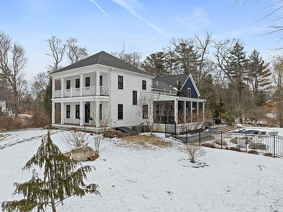 This stunning Georgian Colonial is far from your average home, blending timeless elegance w/ a Restoration Hardware vibe. Inside gorgeous hardwood floors flow throughout the home, which features 4 bedrooms, 3 1/2 baths, and an oversized two-car garage with sliding back doors. There's a dreamy 1st floor primary suite as well as 2nd floor guest quarters or optional 2nd primary suite Enjoy serene outdoor living in the gorgeous, screened porch overlooking a stone patio and a sparkling saltwater pool all within a fenced backyard. Additional highlights include double covered front porches 1st floor office, 2nd floor study a finished basement with open staircase from main living area complete w/ theater room and living room. Lots of bells and whistles including a recessed speaker system and irrigation. All this located in ultra desirable Marshfield Hills, this home offers easy access to highways and the train is close to beaches and all the charm the area has to offer.
