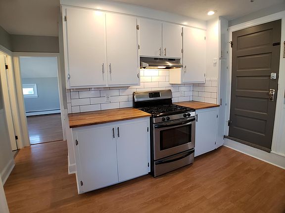 Newly renovated apartment. Excellent location. Walking distance to downtown with plenty of street parking available. Completely remodeled bathroom with spacious tiled shower and all new fixtures. Renovated kitchen with subway tile, solid oak counter tops, under cabinet lighting, updated stainless steel appliances and new hardware. New carpets in bedroom and common areas and new paint on all surfaces. Electronic locks on apartment doors and washer and dryer on-site. Ceiling fans throughout apartment. Recent improvements make this a highly energy efficient apartment. Attic and basement weather sealed and insulated by National Grid Energy program. Shared, fenced in yard. Term negotiable; 12 month lease preferred. Applicant responsible for a $29 non-refundable fee (per adult) to run credit and criminal checks through Zillow application process. Pets are reviewed on a case by case basis. No Smoking. Tenant pays electricity, gas, cable/internet. Owner pays for water and lawn care. Tenant responsible for electric and gas heat.