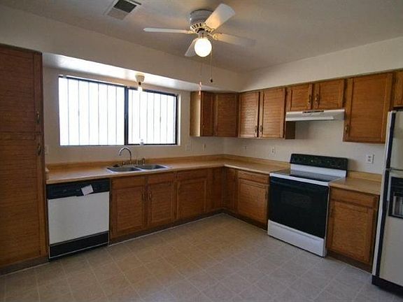 No need to look any further! This one's all dolled up and ready to go! Very well maintained and tastefully upgraded features throughout including ceiling fans in every room. Newer appliances in kitchen, and refrigerator stays! Inviting front entry and bay window in living room with fantastic sunset views. Large back yard with covered patio and view of the mountains. Back yard access and plenty of room for an RV. All of this conveniently located in the middle of Rio Rancho - close to walking trails, shopping, entertainment, and dining. NO EVIDENCE OF POLYBUTYLENE.