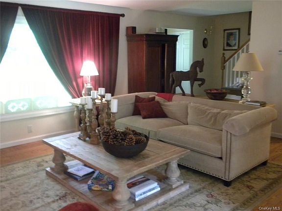 FOUND: a spacious rental where you can breathe! GET OUT OF THE city before the next thing hits. Come to Pound Ridge! Move into this upscale country home on a lovely winding road adjacent open land; minutes to Stamford, Bedford Village and Scotts Corners. LARGE living room with wood burning Fireplace; Gourmet Kitchen with Cherry Cabinets and Granite counters. Wide Plank Oak floors. The 22x16 addition has a large room for use as office; yoga/art studio; with storage area above. This house is laid out with many separate spaces and sleeping on 2 levels. PLUS a Full Finished basement walks out; GYM, Family Room & full bath. 4 baths are finished in stone. Really usable flat acreage. Lovely deck across back of house walks out from Dining area and addtion. Outdoor seating areas on 3 sides! Bucolic country setting in the heart of pound ridge. Easy commute from either Mt Kisco train or Stamford CT train. Pets OK with ownr approval and add'l security. Don't miss the video walk through!