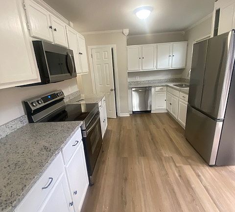 Granite countertopsLuxury plank flooringFront porch deckBrand-new cabinetsAll-new stainless steel appliances