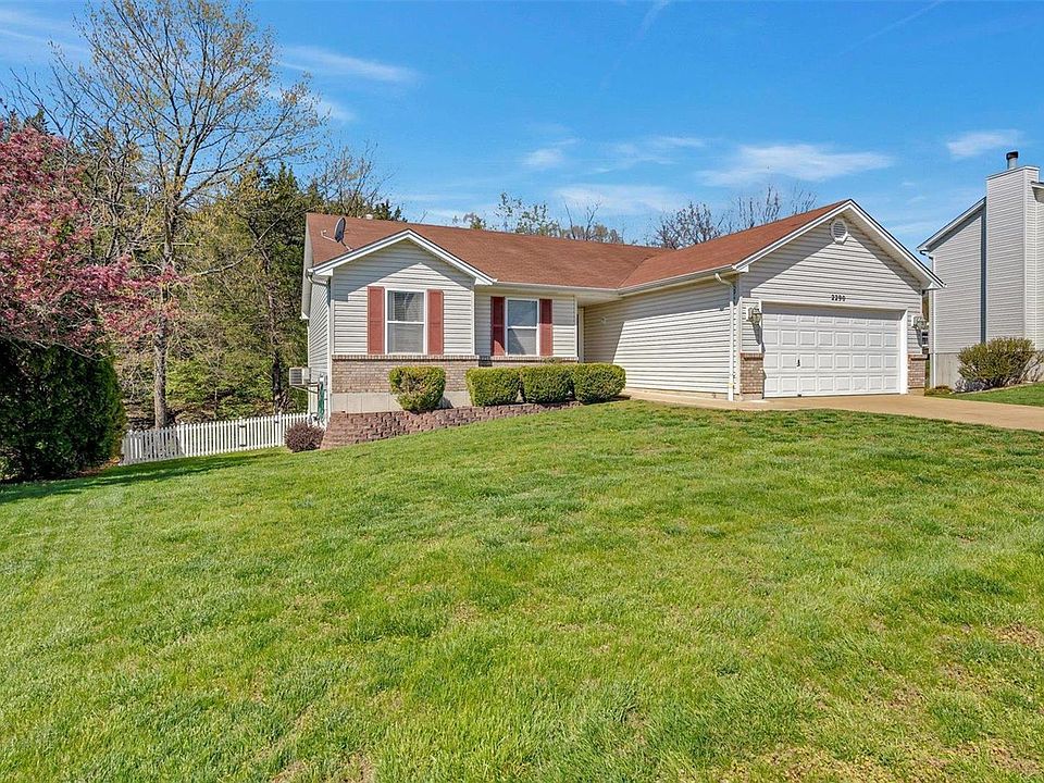 Fall in love with the serene setting of this beautiful ranch. This 3 bed/2.5 bath home features an updated kitchen with granite counter tops, a spacious great room with vaulted ceilings and a woodburning fireplace. The large primary bedroom has a walk in closet, a private full bath and an amazing view to enjoy while soaking in the tub. The finished walk out lower level is perfect for entertaining with a huge family room, a wetbar with seating area, a half bath and plenty of unfinished storage space. The oversized 2 car garage even has a workshop/storage space! Step onto the deck and relax immediately with the property backing to the wooded common ground and a small creek. Additional outdoor space includes a large patio and fully fenced in level back yard. Refrigerator, washer and dryer to stay with the house. Move in ready!