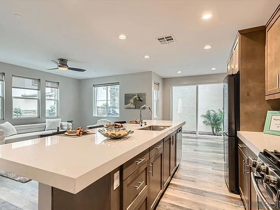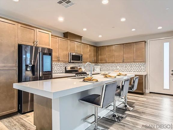 Sellers are willing to entertain offers between $860,000 - $890,000! Beautiful modern and contemporary home located in the heart of the Millenia community. Designed for both style and comfort, this immaculate residence offers a thoughtful layout and luxurious upgrades throughout. Enjoy energy efficiency with 15 leased solar panels! Step into the bright and airy open-concept main level, where the spacious living and dining areas flow seamlessly into a beautifully appointed kitchen. The kitchen boasts a sleek, updated design with a large center island—perfect for entertaining or casual family meals. Brand new carpet adds a fresh, inviting touch, while oversized windows bring in an abundance of natural light. The second floor is home to 3 bedrooms plus an additional bonus room/office! On the top floor is a versatile loft/family room that provides the ideal space for a home office, gym, or playroom, complete with a convenient full bath and a tranquil private retreat. Additional highlights include a tankless water heater for efficiency and comfort, and an expansive two-car garage featuring durable epoxy flooring. Outdoor living is elevated with a beautifully landscaped side yard, completely reimagined into a functional and stylish entertaining space. Enjoy a custom 9-foot BBQ island, elegant Belgard pavers, and plenty of room to relax or host gatherings under the sun or stars.As part of the vibrant Millenia community, residents enjoy access to resort-style amenities including a sparkling pool, relaxing hot tub, BBQ area, playground, dog park, and scenic walking trails. The location is incredibly convenient—just moments from top-rated schools, with easy access to restaurants, gyms, and premier shopping at Otay Ranch Town Center. This is more than just a home—it’s a lifestyle. Don’t miss the opportunity to make it yours!
