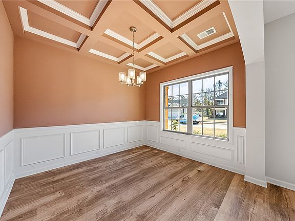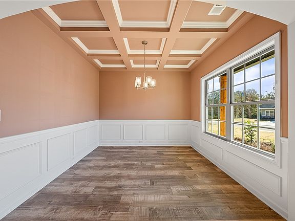 Welcome to Drakes Landing, a vibrant Hughston Homes community offering the perfect blend of comfort, style, and modern living, making it one of Opelika’s most sought-after neighborhoods! Introducing our Birch A Floorplan, featuring 2,186 sq. ft., 4 bedrooms, and 2.5 baths, thoughtfully designed for today’s lifestyle. Step into an inviting foyer with a convenient coat closet that leads to a formal dining room rich with architectural detail. The spacious great room is bright and open, centered around a beautiful wood-burning fireplace, perfect for cozy gatherings. The well-appointed kitchen showcases stylish cabinetry, granite countertops, a tiled backsplash, recessed lighting, and stainless steel appliances, including an electric range and dishwasher. The large center island, ideal for meal prep or entertaining, overlooks both the breakfast area and great room, while a spacious pantry provides plenty of storage. The laundry room and half bath are conveniently located on the main level. Upstairs, retreat to the expansive owner’s suite with tray ceilings and abundant natural light. The luxurious owner’s bath includes a garden tub, separate shower, dual vanity, and dual walk-in closets for ultimate convenience. Additional bedrooms offer generous space, comfort, and ample closets. Throughout the home, you’ll find luxury vinyl plank flooring in many main-level areas and the upper landing. A two-car garage and our Signature Gameday Patio, featuring a wood-burning fireplace, outdoor speakers, and a ceiling fan, create the perfect space for relaxing or fall football weekends. With tons of included features and timeless craftsmanship, the Birch A is absolutely a must-see!