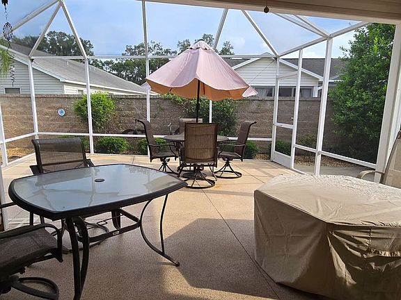 This lovely 3 bedroom courtyard villa, built in 2011, is located in the village of Tamarind Grove close to two of the newest recreation centers, Sterling Heights and Seabreeze as well as a variety of golf courses. The home has Hi-Speed internet service. The master bedroom has a king bed and flat screen TV with a large walk in closet. The second bedroom has a queen bed and the third bedroom is furnished as a den/computer room with a queen inflatable bed furnished for guests. A bird cage has been added to the patio for a more enjoyable experience. It is a short distance to Sumter Landing Market Square where you can enjoy nightly entertainment, your favorite movie, shop in one of the many stores and have a meal in a variety of restaurants.