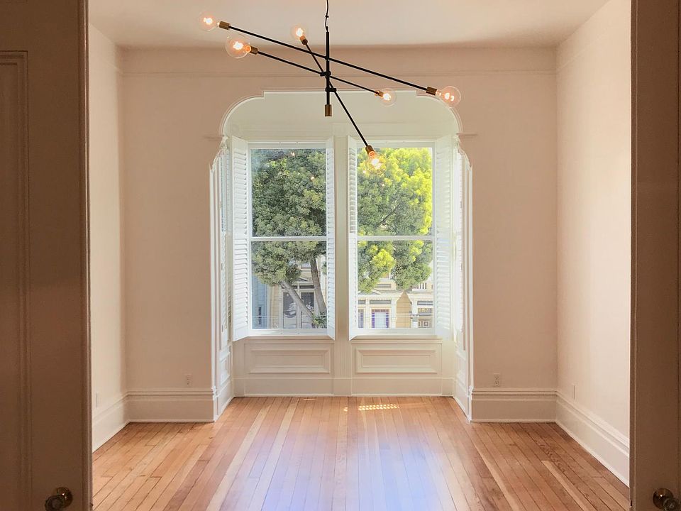 Beautifully renovated top floor Victorian in Lower Pacific Heights with a private entrance. Two bedrooms plus office, two full bathrooms one with a bathtub and one with a shower. High ceilings, bay windows, period detail, and abundant natural light create a warm, spacious feel.