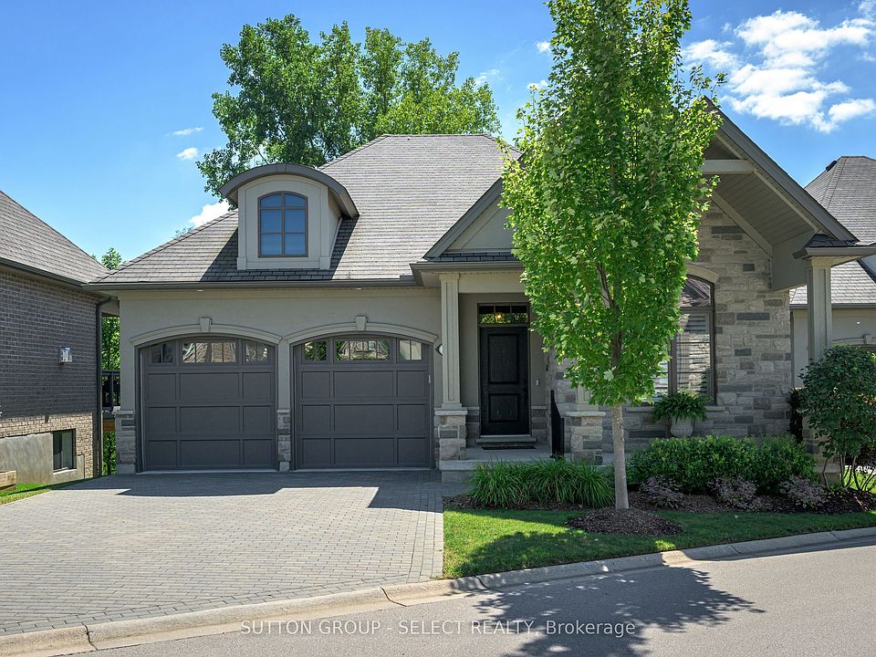 Perched overlooking lush, green space in the Villages at Sunningdale this 3-bedroom executive bungalow offers the perfect blend of timeless design, high function, and lifestyle convenience. With 1650 sq. ft. above grade plus a walk-out lower level adding another 963 sq ft of finished living, this home backs onto mature trees and green-space, providing privacy and natural views. The main floor showcases hardwood throughout, a bright open-concept layout, a great room with gas fireplace accented by custom cabinetry, a wall of windows and a garden door to the covered deck with glass railing and soul-nourishing views. The kitchen features ceiling-height cabinetry, granite surfaces, a central island, and stainless appliances, seamlessly connecting to the dining area. Two main floor bedrooms including the primary suite with a walk-in closet, ensuite & beautiful views. A second full bath, and laundry/mudroom with garage access complete this level. The walk-out lower level expands the living space with a spacious recreation room with garden door to patio, an additional bedroom overlooking the trees, a 4-piece bath, and a finished bonus room with egress window ideal for office, or guest bedroom. Lots of storage room too! Set in the desirable Upper Richmond Village community, this home offers more than just a residence it provides a lifestyle. Stroll to Uptown shopping plaza for amenities including Pastry Culture Café (incredible!), yoga studio, Springhill Flowers (gorgeous bespoke arrangements), sushi, vet, dentist, and banking. Minutes to Sunningdale Golf, Masonville Mall, Western University, University Hospital, Weldon Park, and walking trails through Medway Valley Heritage Forest. Enjoy refined one-floor living in a sought-after enclave where comfort, convenience, and community come together. Private road-Insurance, snow plowing including your driveway, walk & porch to the door, irrigation system & ground maintenance of common areas & your personal lot/yard $278/month