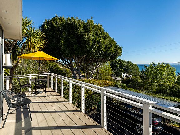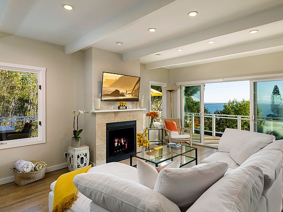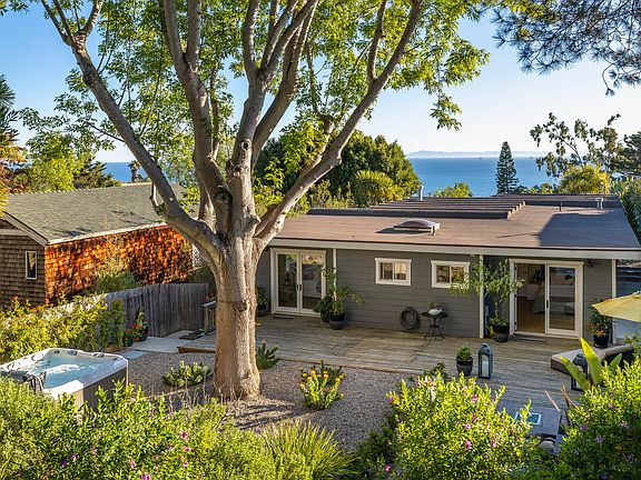 Available June 1, 2026 onward, flexible terms. Sophisticated yet casual, beach town rental with panoramic ocean views located on a quiet dead-end street in the quaint town of Summerland. This beautifully upgraded furnished 4 bed/3 bath home is an easy stroll to the restaurants and shops of Summerland, and a few minutes' drive to downtown Santa Barbara or Carpinteria. The spacious open floor plan makes living easy. The kitchen has a large center island with breakfast bar and marble countertop, stainless steel appliances, subway tile backsplash, plenty of cabinets and a pantry, and opens to the dining and living rooms. Hardwood floors and white beam ceilings, an electric fireplace and large patio doors opening to a fabulous wrap around deck feel so spacious It doesn't get any better than barbequing on the deck while watching the sunset over the Pacific Ocean.The gorgeous primary bedroom suite with double French doors opening out to both the front deck and the private back yard patio where one can relax in the hot tub. The elegant primary bathroom has an oversized walk-in tiled shower with rain head shower head and large double vanity. The second and third bedrooms (also on the main floor level) share a lovely upgraded bathroom. The second bedroom also opens to the backyard.