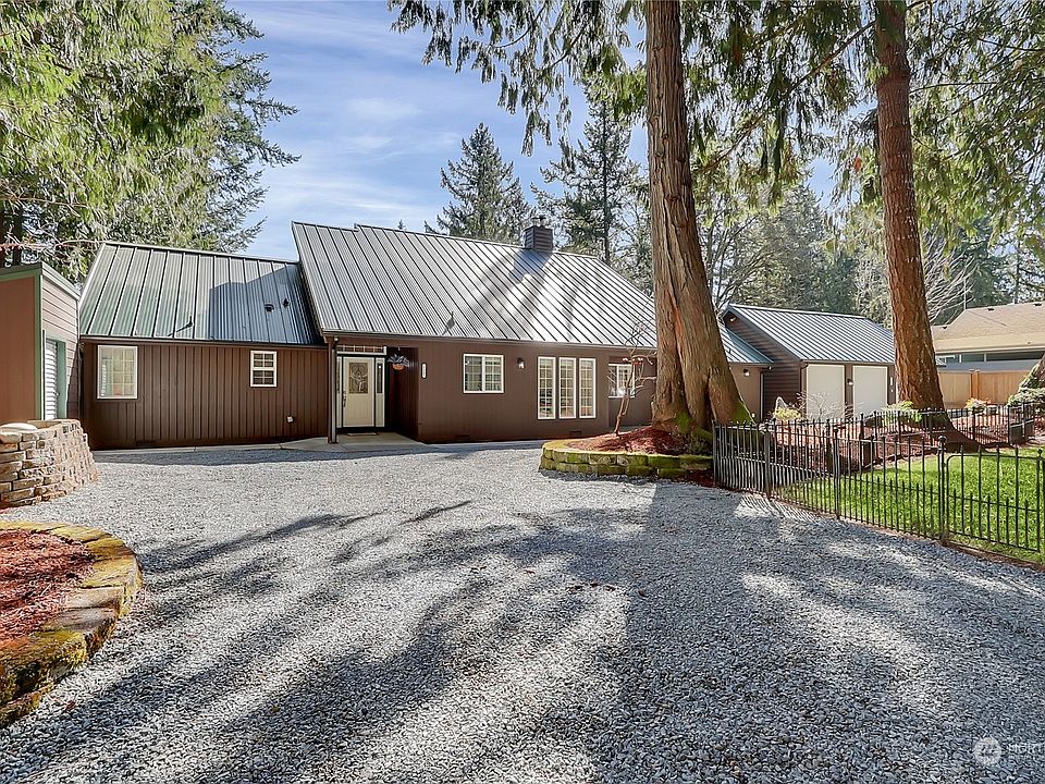 MAIN FLOOR living with 1 step inside & 2 Primary Suites. Gorgeous views from every room! Multigenerational home. ROOMS are MASSIVE! GRAND Greatroom! Open kitchen/formal living/family w/fplc/formal dining. Primary suite has fplc & luxurious bath w/jetted tub. 2nd Primary w/built-in cabinets. HUGE laundry w/half bath. Composite deck across entire back of home w/access from BOTH Primary Suites & Great room. Downstairs find a Den/Office, STORAGE, full bath, 2 bedrooms, Rec. room w/wood stove and 4 door access to rear grounds, cabana, trail to meadow & garden beds. Home has NEW carpet, LVP, metal roof, interior & exterior paint, deck, 2 H2O tanks, plumbing & lighting fixtures. Ceiling fans, SOARING ceilings! 3 car gar, circular driveway & MORE.