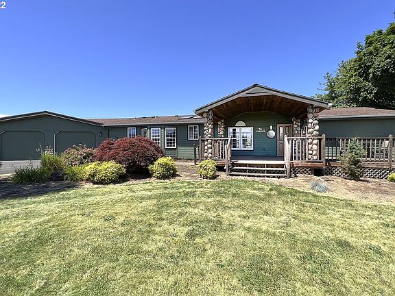 Wonderful one-level home that sits on 2.5 flat acres w/ territorial/mountain views & 60x40 shop! Two covered patio areas & wrap around deck make for endless outdoor entertainment. The vaulted great room has hardwood floors, a pellet stove & french doors leading out back. Kitchen is full of natural light & includes granite counters and eat bar. The spacious primary has wood accents & nice bath. Additional bedrooms have new laminate flooring. New well pump & heat pump in 2019. New interior paint.