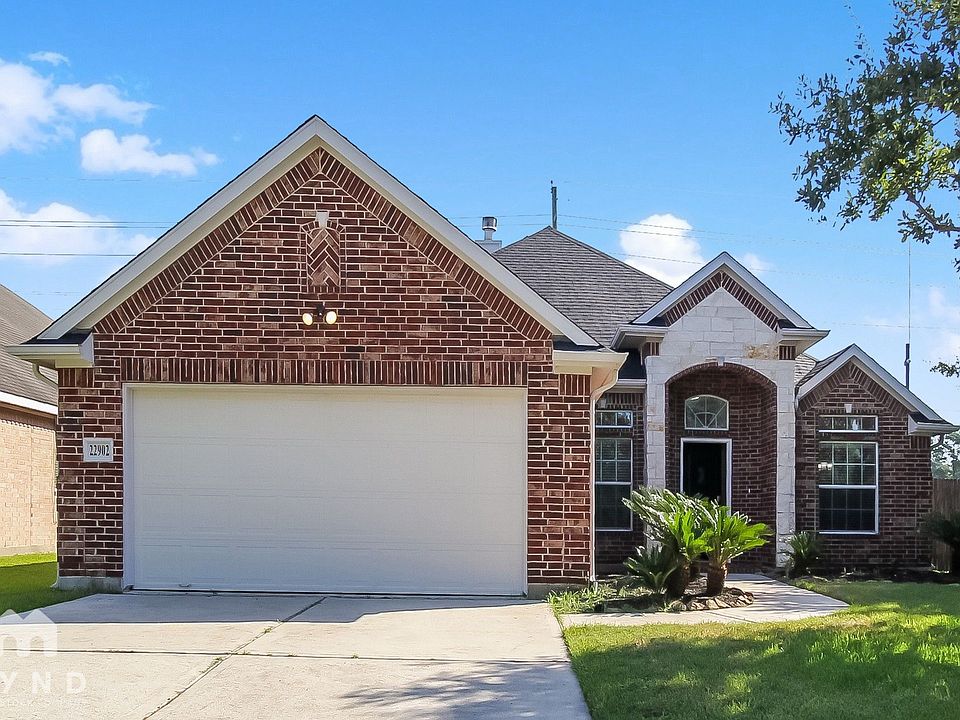 Welcome to a beautiful single-story home at 22902 Creekside Gate Court, offering a generous 2211 sq ft of comfortable living space. This residence features three bedrooms and two full bathrooms, with a bright open layout that includes a spacious living room centered around a modern decorative fireplace. The gourmet kitchen is a chef's delight, boasting a full suite of stainless steel appliances, wood cabinetry, a breakfast bar with seating, and an adjacent dining area. The primary bedroom is a luxurious retreat with a lovely bay window, a large walk-in closet, and an attached spa-like bathroom with a dual sink, separate tub, and shower. Two additional bedrooms, a full bathroom, and a dedicated study room perfect for a home office complete the layout. This smart home is equipped with a smart lock, thermostat, and hub, providing modern convenience and security. Outside, you'll find a private patio and a fenced backyard. Located in the Creekside Place Community, residents have access to a playground and picnic area, and the home is conveniently situated near TX-99. Don't miss out on this fantastic opportunity! Schedule your tour today!