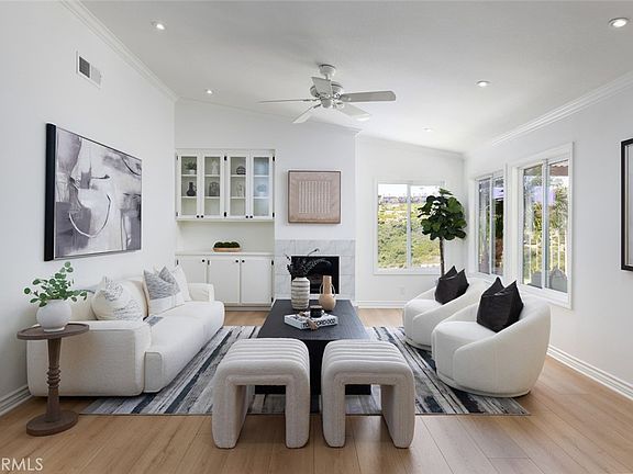 Smart income or primary residence. This beautifully updated single-level home within the desirable Villa Pacifica community is just one mile from the sand. Enter through a large enclosed and private courtyard that features a tranquil fountain and views of the canyon hillsides. Enter into the bright and spacious living room with vaulted beamed ceilings, built-in bookshelves, and a gas fireplace. The gourmet kitchen features custom cabinets, granite countertops, stainless steel appliances, recessed lighting, modern fixtures, and a breakfast bar that opens into the cozy family room and another enclosed patio. You will appreciate the convenience of having direct access into the two-car garage, which includes a washer, dryer and plenty of built-in storage. The primary bedroom suite also has vaulted ceilings, plus a large wardrobe, and a bathroom with double vanities and walk-in shower. This beautiful detached single family home has no age restrictions, only one step upon entry, and very simple to maintain, offering the ease of "lock and go" and landscaping cared for by the HOA for both front and back yards. Enjoy the ocean breezes and living in this quiet, safe neighborhood with wonderful amenities such as a pool, spa and clubhouse. Now is your chance to live the Laguna Niguel lifestyle and everything this Southern California coastal setting has to offer.