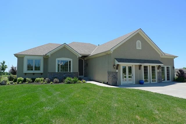 Exceptional price on former model home in coveted Stone Canyon! Priced nearly 15k under recent appraisal, this beautiful true ranch home features popular split bedroom plan with private master suite featuring spa-like bath. Lots of lush landscaping, nearly new custom aluminum fence (wrought iron look), sprinkler system, custom blinds & nearly 2000 square feet of finished living space on main level. Award winning Blue Springs Schools, super easy highway access & close to shopping & restaurants. Steal of a deal!