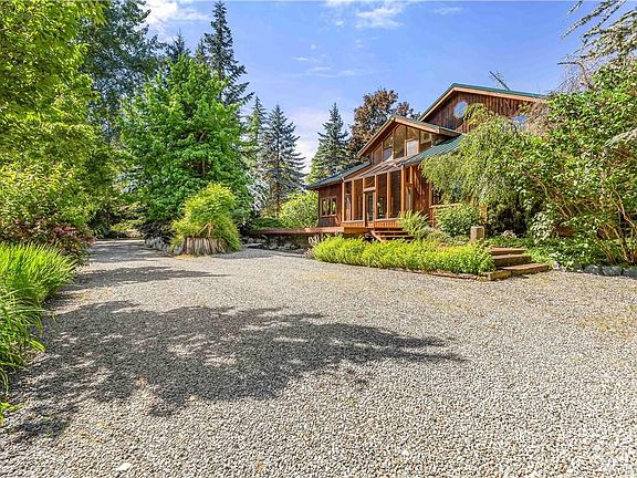 1st time on the market. Incredible 5.6 acre oasis. Unique 1.5 story, 3 bed, 1.75 bath cedar home, with south facing sunroom, large deck. Amazing 1500 sq ft shop with lifts/220 power. Addl. 900 sq ft carport, over garage 750 sq ft 1 bed 1 ba apt. A natural vine covered trellis guides you to the nature and wildlife that adorn this property. A lovely path leads visitors to the 584 sq ft gazebo with outdoor kitchen. Very private 3 wooded driveway entrances. Secluded yet 5 min. to town/shopping. Wow!