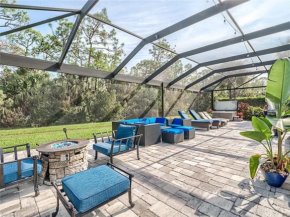 Exceptional private 18,000+ sq ft lot and customized home located on quiet street in Cedar Glen in Shadow Wood. The owners doubled the size of the lanai which features an open lounging area with all day sun, picture screen windows, outdoor kitchen, covered and uncovered dining area, resort style pool with water feature, above ground hot tub and fire pit. Entertaining is easy for family, friends, grandkids or pets with this outstanding space. Inside the home incorporates a great room floor plan with vaulted ceiling and easy access to the kitchen. The kitchen has quartz countertops, 36 x 36 porcelain flooring, center island for prepping, eat-in-bar and eat-in kitchen. Lots of bedroom spaces with large primary ensuite, guest suite and two bedrooms with private bath that could be used as flex rooms for second office, gym or hobby room. Den is located off great room and has a closet and could be used as a 5th bedroom. Primary suite features a sitting area, private exit to lanai, 2 custom closets, and renovated bath. Additional features include 2018 roof, oversized garage, electric hurricane shutters on lanai and front door, and lanai pavers. Shadow Wood Country Club has 54 holes of golf, social/dining, tennis and bocce. The new lifestyle Amenity Center is under construction and will include 2 resort style pools, a kid's pool, restaurant and bar, 6 indoor pickleball courts, racquet pro shop and grab and go cage. The Commons Club membership offers access to the private beach club, fitness center and spa, pickleball, social activities, private restaurant, playground, and lap pool. Memberships optional. Great location close to airport, shopping, restaurants, beaches and health care. Give me a call for your private tour today.