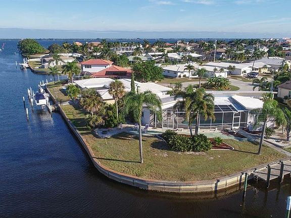 PRICE REDUCTION on this classic home is a waterfront oasis- just 2 canals in from the open Sailboat waters of the Peace River & Charlotte Harbor. The Spectacular Tip lot with full south to west rear exposure is 1/3 acre with 210 feet of city maintained concrete seawall, tucked at the end of a quiet cul-de-sac. Located on a large basin of intersecting deep water canals on prestigious Pompano Inlet, noted for its many showcase homes. Setting design trends, the mid-century modern architecture incorporates a juxtaposition of spaces, allowing each bedroom with sliding glass access to the centrally located heated pool. The retro Kitchen was state-of-the-art & features a large center island & Sub-Zero refrigerator. Lovingly maintained with full hurricane protection, and a newer AC system, it's now time for a lucky new owner to take over this special property, the lot's value alone a treasure to accommodate your most fanciful dreams for the future. Discover the exceptional location of Punta Gorda, a historic waterfront town, rich with Indian lore & a true mecca for fishing & boating. Fine dining & miles of bike & hike trails combine recreation with luxury. No doubt about it, an investment in paradise awaits you at 2291 Bayview Rd.