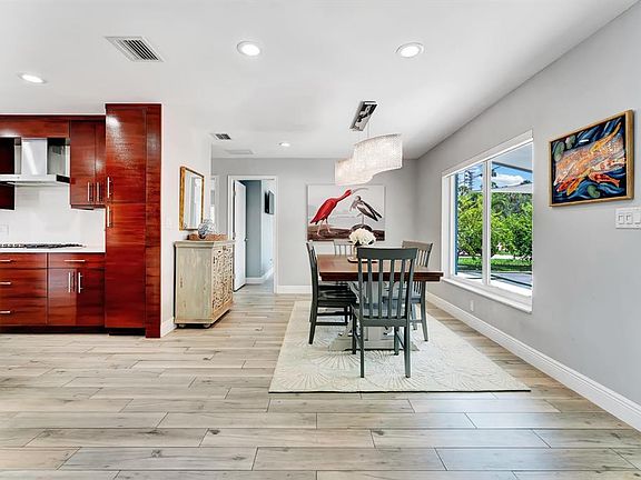 Your winter getaway awaits with your own private dock with direct ocean access! Introducing a stunningly remodeled 3-bedroom, 2-bathroom pool home that offers direct ocean access with no fixed bridges! This exceptional property accommodates a boat of up to 60 feet, making it a perfect choice for boating enthusiasts. Inside, you'll be captivated by the contemporary finishes that enhance both the interior and exterior of your new residence.The home features custom Brazilian oak cabinetry, a Bosch gas stove, and high-quality stainless-steel appliances, ensuring a modern and functional kitchen. The designer lighting and beautifully remodeled bathrooms add a touch of elegance, making this home truly move-in ready. Soak up the sun in your private oasis backyard with a new custom pool. New Summer kitchen outside under the patio. Recent upgrades include a new custom concrete and turf driveway, a brand-new roof installed in 2023, and full impact windows and doors for added safety and energy efficiency. Step outside to enjoy a resort-style tropical pool area, complete with a fresh marble pool deck and your very own turf putting green, perfect for relaxation and entertainment. This home is a true gem that combines luxury living with the best of coastal lifestyle!