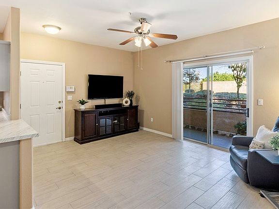 Henderson Green Valley condo; primarily enjoyed as a vacation home! Perfect for first time buyers, investors or roommates. 1st floor unit in the 1st building inside the gate making it easy to find*Balcony faces east but the westside unit insulates from above in the summer heat*Beautiful greenery lines the sidewalk w/flowering bushes for a welcoming entrance. Security door lets in fresh air on nice days. Tile flooring thruout. Kitchen features SS appliances, window over the sink, plenty of cabinets & pantry cabinet. Dedicated dining area for a table. Spacious family room opens to private balcony for relaxing. Bedrooms are separated for privacy; secondary bedroom next to full bathroom. Laundry closet w/two shelves; included washer &dryer;hardly used thanks to vacation home care, providing like-new convenience for all appliances. Hall closet adds extra storage. Primary bedroom features two closets & private bath w/large linen closet. NEW water heater installed October 2025. Move-in ready!
