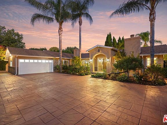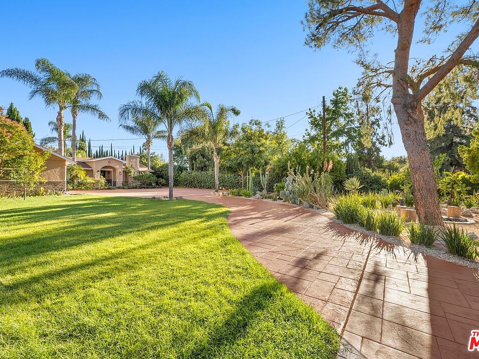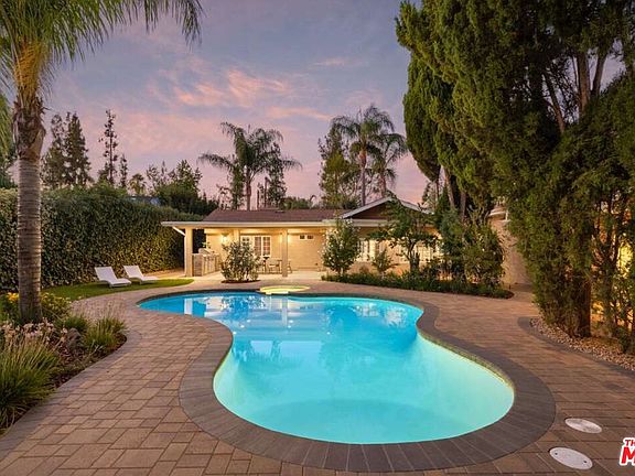 An Elegant Retreat in Walnut Acres offering the perfect blend of resort-style entertaining and private luxury living. Nestled on one of the most prestigious streets in Woodland Hills, this hidden gem exudes privacy, tranquility, and timeless elegance. From the welcoming circular driveway to the expansive backyard, the property feels like a private resort. A sparkling pool surrounded by fruit trees and vibrant gardens creates the ultimate setting for gatherings or peaceful relaxation. Set on a sprawling 25,700+ sq. ft. flat lot, the estate includes a single-story ranch home and a newly built 1,050 sq. ft. ADU featuring two ensuite bedrooms, a kitchenette, and its own electrical panelideal for extended family, a private office, or rental income. Inside the main residence, a remodeled gourmet kitchen showcases quartz countertops, custom cabinetry, premium appliances, bar seating, and seamless flow into the spacious family room with nature views. Additional highlights include a formal dining room, a separate living room with a fireplace, and a grand double-door foyer. The private bedroom wing offers sunlit retreats tucked away from the main living spaces. Recent upgrades include a brand-new roof (2024), upgraded electrical panel (200 AMP), and modern finishes throughout. Outdoors, a covered stone patio invites year-round entertaining, while a 460 sq. ft. bonus studio with half bath, currently used as a gym/massage roomadds versatility. Moments from premier shopping, dining, entertainment, freeway access, and award-winning schools, this residence is more than a homeit's a lifestyle. A rare Walnut Acres treasure not to be missed!