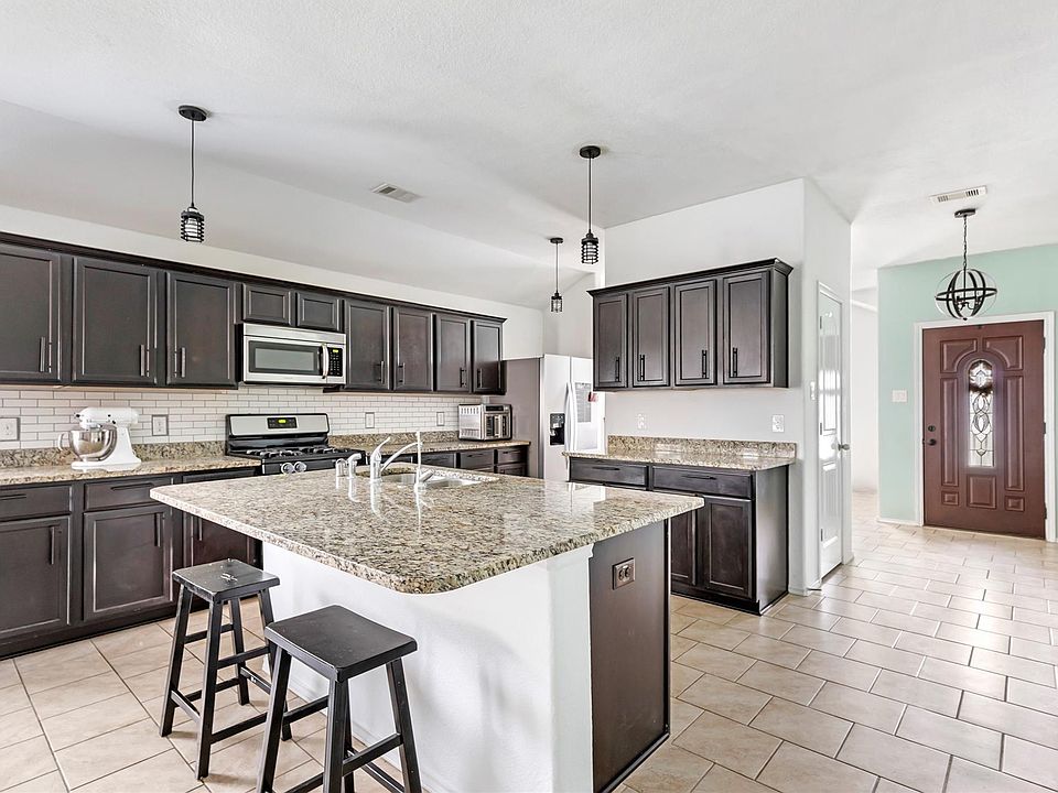 Welcome Home to Vintage Creek! Step inside and discover a bright, inviting living space filled with natural light — ideal for both relaxed evenings and effortless entertaining. The beautifully updated kitchen features gleaming stainless-steel appliances, elegant granite countertops, and a convenient breakfast bar, making it the perfect spot to gather with family and friends. Unwind in the serene primary suite, complete with a spa-inspired bath offering dual vanities, a soaking tub, and a separate shower. Outside, enjoy the Texas sunshine in your private backyard retreat featuring a covered patio and lush landscaping — perfect for morning coffee or weekend BBQs.
