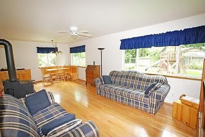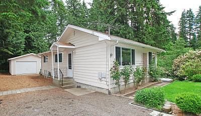 3 bedroom, 1 bathroom, 1000 sq ft on top with 500 sq ft in the partially finished basement, Small office room in basement, detached 1 1/2 car garage on 1/2 acre wooded lot in Bothell. Fully fenced, large new deck, tiered garden new nterior paint, newer roof and vinyl windows, new carpet in partially finished daylight basement, hardwood floors throughout living area, wood stove, jacuzzi outside basement entrance. Neighborhood Description Convenient to 405 and shopping. Rural feel, yet close to everything.