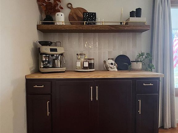 Corner gas fireplaceBeautiful hardwood floorsWonderful natural lightUpdated kitchenFabulous ceramic backsplashTiled floorsStainless steel appliances